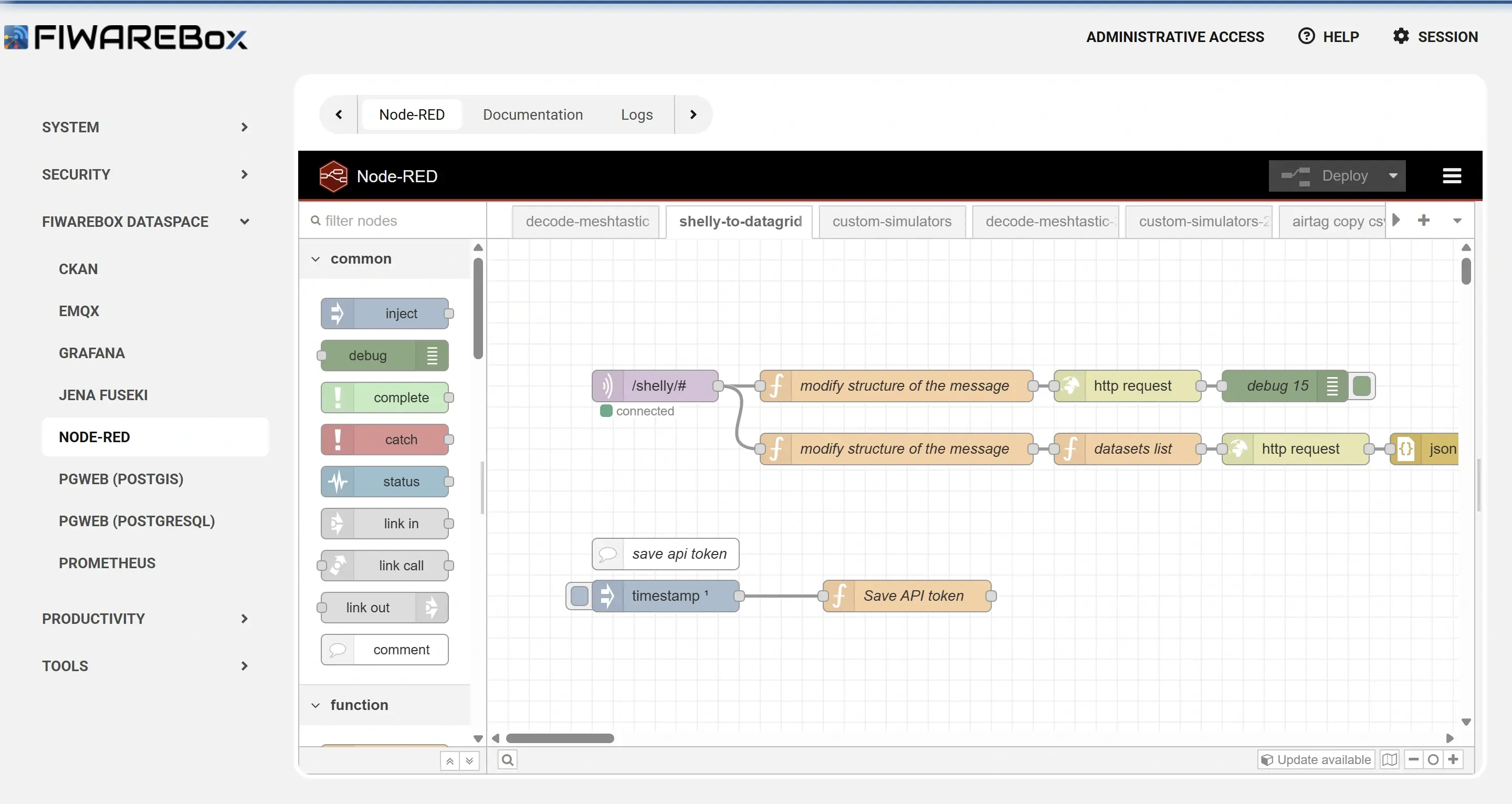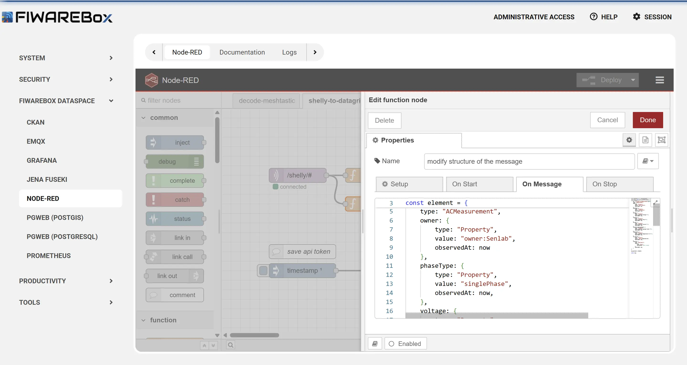 We implemented the integration inside Node-RED, which is part of our FIWAREBox environments.