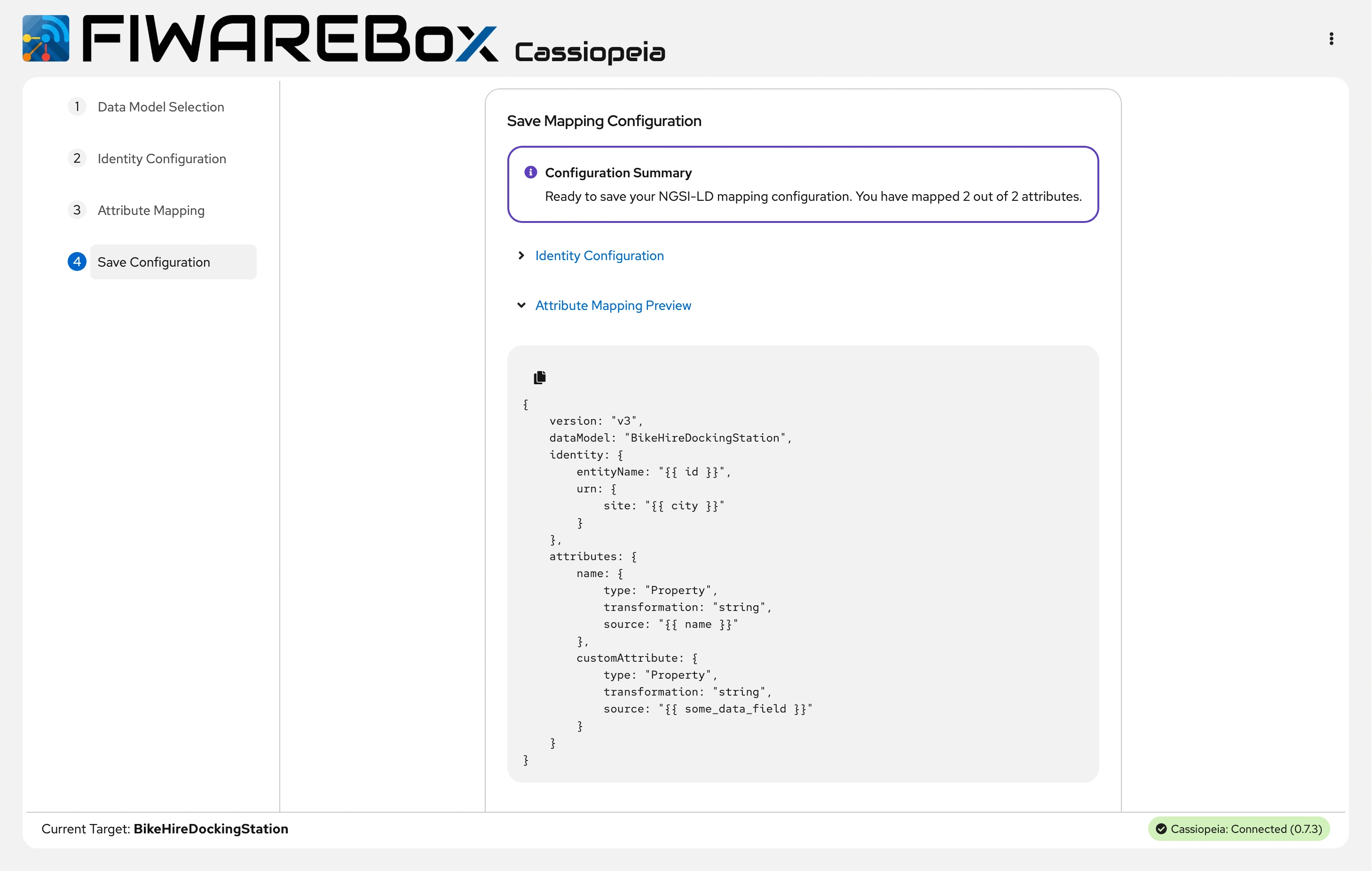 FIWAREBox Cassiopeia - Attribute Mapping