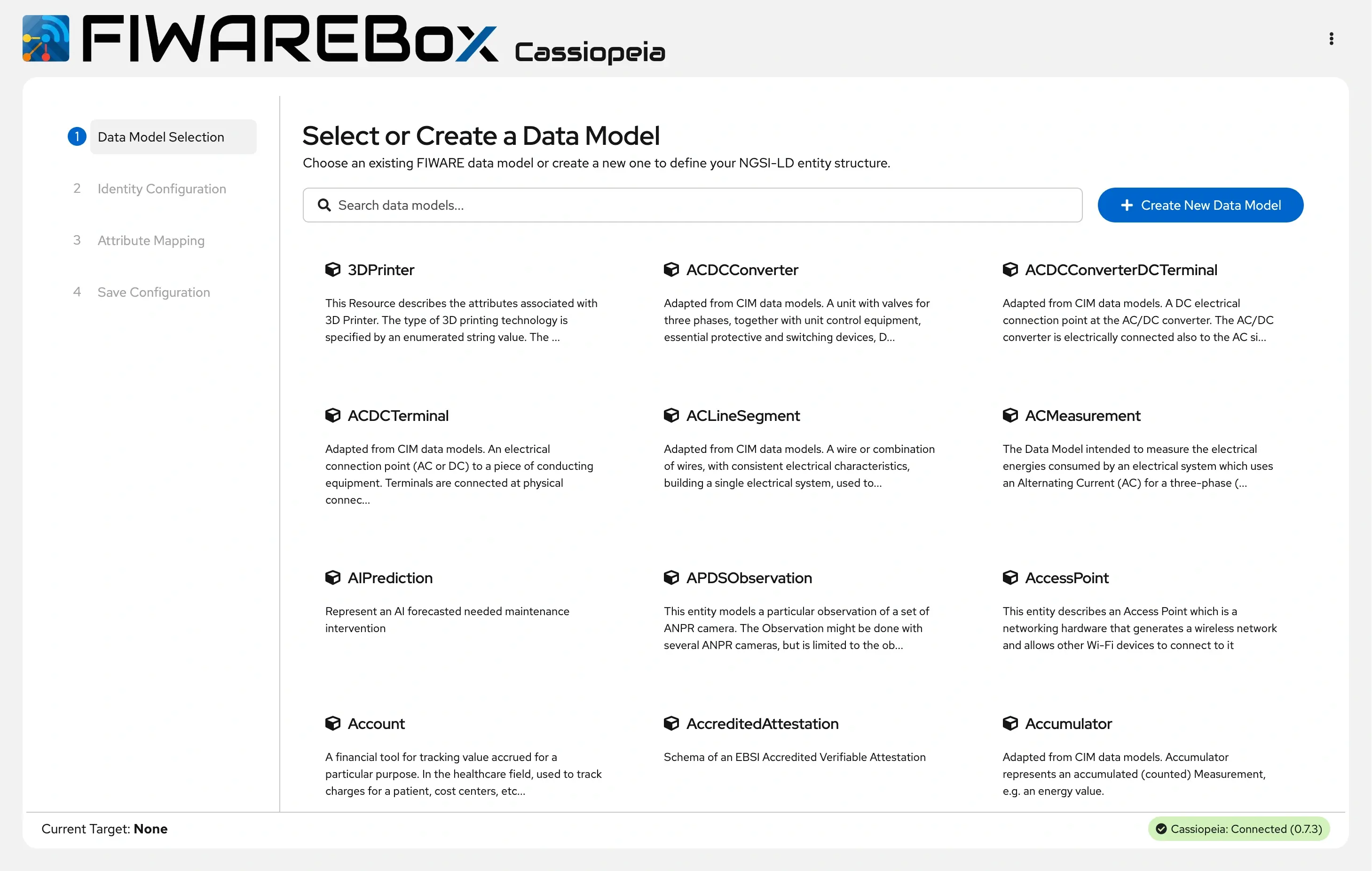 FIWAREBox Cassiopeia - Data Model Selection